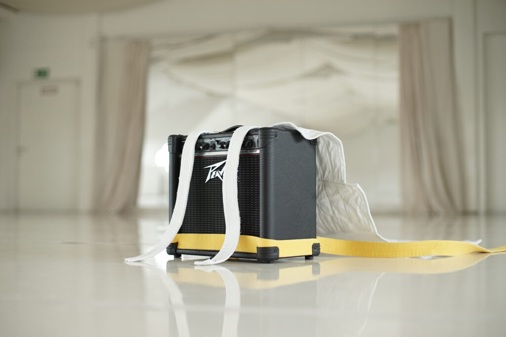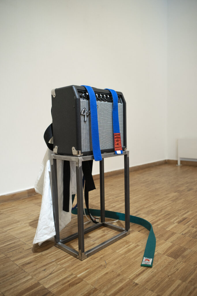 Guitar amplifiers, karate kimonos, straps, steel bases, microphones, cables